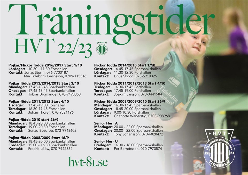 Så här tränar våra lag säsongen 2022/2023. Välkomna att prova på. Har ni några frågor så finns kontaktuppgifter under varje lag. IF HV Tidaholm 81 19 sep 2022 0kommentarer
